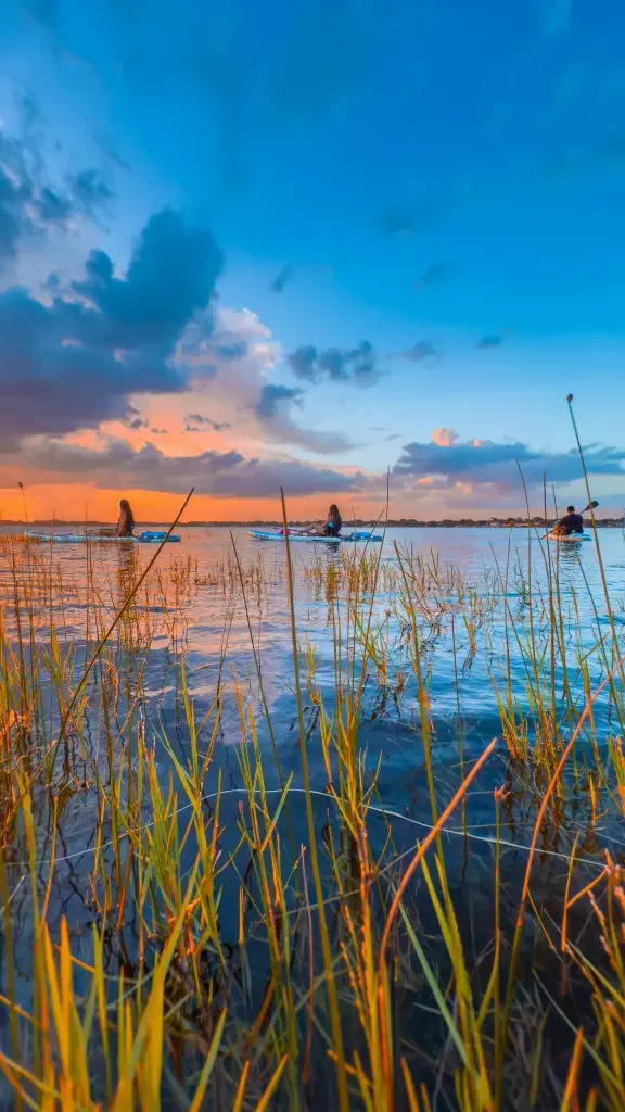 Summer brings warm water adventures and the world-famous bioluminescence tours in Merritt Island, where the water glows beneath your paddle.