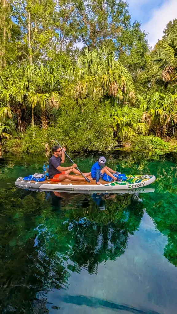 Each location offers something unique, from the crystal-clear waters of Rainbow Springs, where Florida paradise shines through with cascading waterfalls, to Silver Springs, where you can watch turtles, manatees, and fish swimming beneath your board.